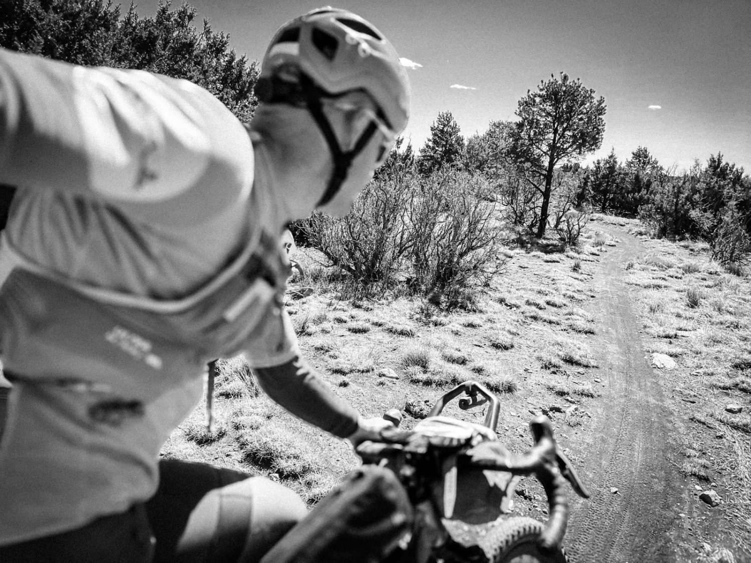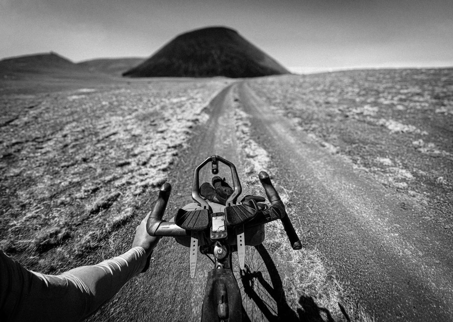 I had time to consider the overtake: He was on the singlespeed, I had gears. He was on flat bars, I had a drop bar 29er with aero bars – precisely for long doubletrack miles such as these. I hunkered down and got to work on the cranks until I saw his dot emerge on the horizon, right at Shit Pot Crater, a black monolith that defines the northernmost point of the course. His speed was about 10 mph. I brought mine up to about 24. I wanted to pass him suddenly and decisively so that he would be discouraged from making chase. I wanted to look fresh and strong although I felt the opposite. I wanted to appear unbeatable.