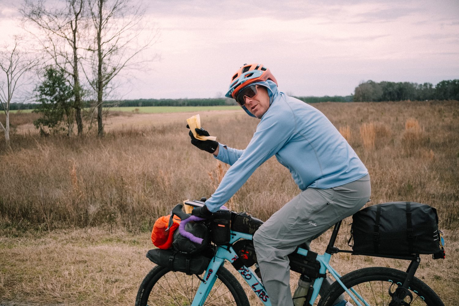in 2023 Mike Smith, one of our very early Rodeo riders and customers reached out with the idea of hosting a Rodeo gathering down south in Florida, where he lives. We decided that spring and summer months were already packed, and that we should find an empty spot in the calendar in January in which to host it so that as many people as possible could come. The Southern Migration was born. About 45 people from all over the country joined us that weekend on a three day self supported bikepacking rally through the dirt roads and moss-draped trees that define the area around Oceloa. Southern Migration was an incredible idea brought to life by Mike, lead by Karlos, and organized by Rodeo. There were as many non Rodeo riders riding with us that weekend as there were Rodeo riders, which is exactly as it should be. Kinship was formed in the miles that we pedaled together. Friendships deepened. Our mutual passion shared in chats by the fires each evening. Through the experience I was reminded that our DNA contained dormant strands of this very thing. I felt reminded of who we were before we became who we are. I was excited for it, and I was also sad for having lost it somehwere in the shuffle of the decade.