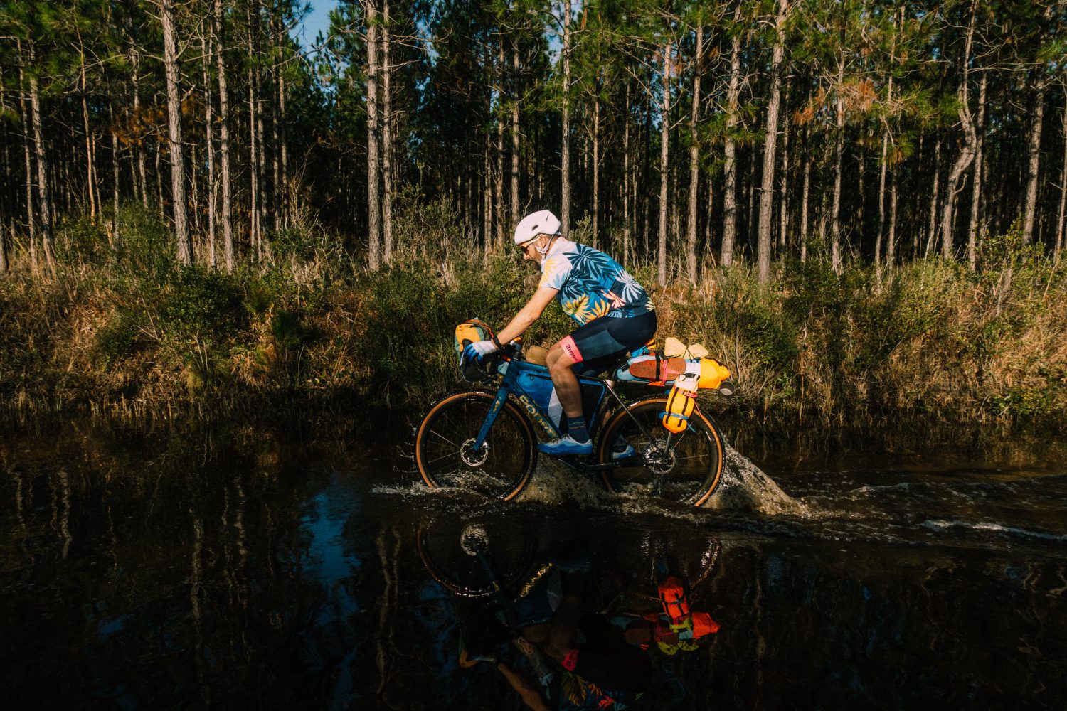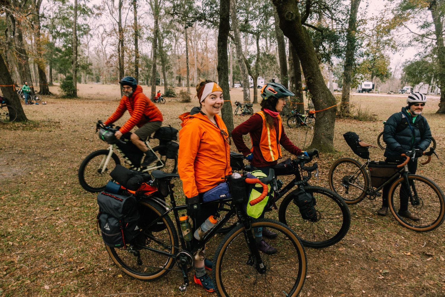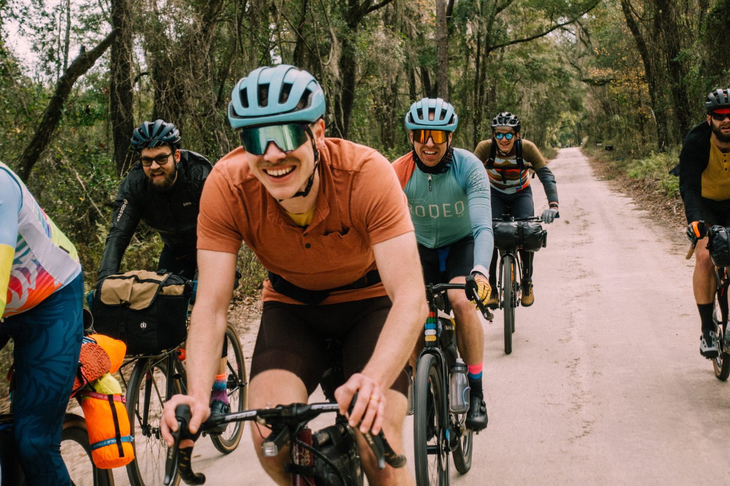 in 2023 Mike Smith, one of our very early Rodeo riders and customers reached out with the idea of hosting a Rodeo gathering down south in Florida, where he lives. We decided that spring and summer months were already packed, and that we should find an empty spot in the calendar in January in which to host it so that as many people as possible could come. The Southern Migration was born. About 45 people from all over the country joined us that weekend on a three day self supported bikepacking rally through the dirt roads and moss-draped trees that define the area around Oceloa. Southern Migration was an incredible idea brought to life by Mike, lead by Karlos, and organized by Rodeo. There were as many non Rodeo riders riding with us that weekend as there were Rodeo riders, which is exactly as it should be. Kinship was formed in the miles that we pedaled together. Friendships deepened. Our mutual passion shared in chats by the fires each evening. Through the experience I was reminded that our DNA contained dormant strands of this very thing. I felt reminded of who we were before we became who we are. I was excited for it, and I was also sad for having lost it somehwere in the shuffle of the decade.