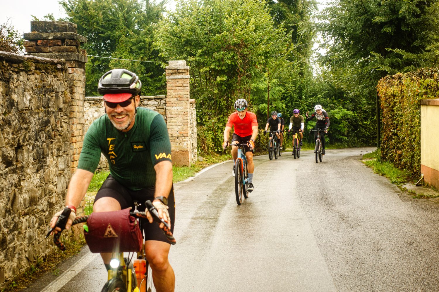 The ride was amazing. There were about ten of us, and I knew only Ugo. Everyone was aboard a Rodeo bike that Ugo had built and sold. I knew none of these people, but somehow they were a part of our tribe, and I a part of theirs. The ages varied widely from 30s to 60s, and absolutely everyone ripped on a bike! Far from a chill champagne gravel expereince, the route, drawn by the owner of the farm, Fulcio, was an incredibly diverse mix of pavement, grass farm tracks, root strewn technical descents, quiet bike paths through towering canyons, and more. What was this place! Who were these people who “got” our style of riding but did it better than we did? Italy seemed to have its own dose of Rodeo DNA, thanks in no way to myself, and I loved it! That evening we gathered around a long table and ate pasta, drank wine, coffee, and grappa together. We talked and talked and talked. Or rather, they talked in rapid fire bursts of Italian, and I just sat there listening because I speak really none at all. I wasn’t bothered in the least. The sounds, tastes, shared passion, and friendliness transcended the langage barrier.