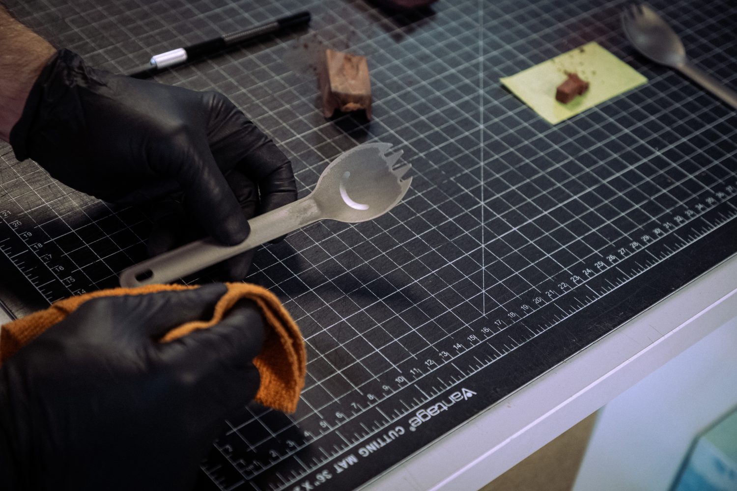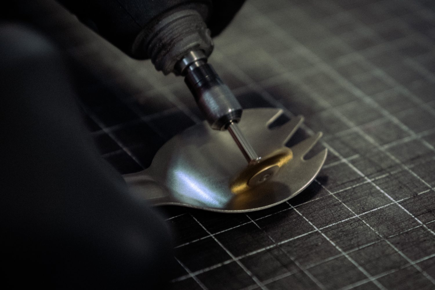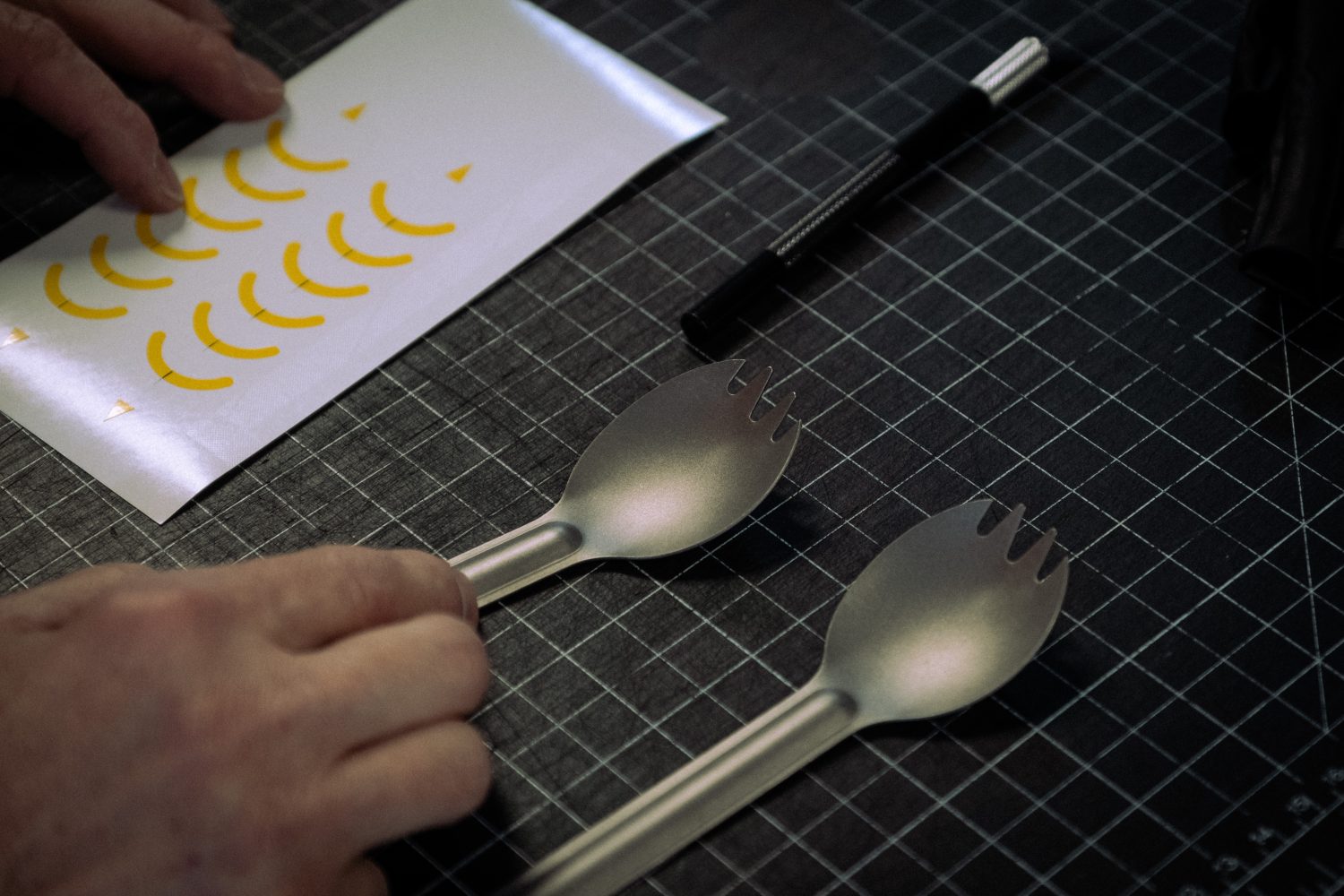 As soon as we created the smiling Spork logo we wanted to also offer a smiling Spork utensil, but we were never able to solve how to make it efficiently. We joked that a laser cut smile would look incredibly cool, but would also make untensil useless for eating soup. We thought about having the smile embossed into the fork, but to do that meant creating special tooling and ordering 5,000 Sporks. As popular as our Spork is, we don’t think the market is quite that large. We considered painting and anodizing the smile as well, but all of that would have made the Spork utensil too expensive to justify.