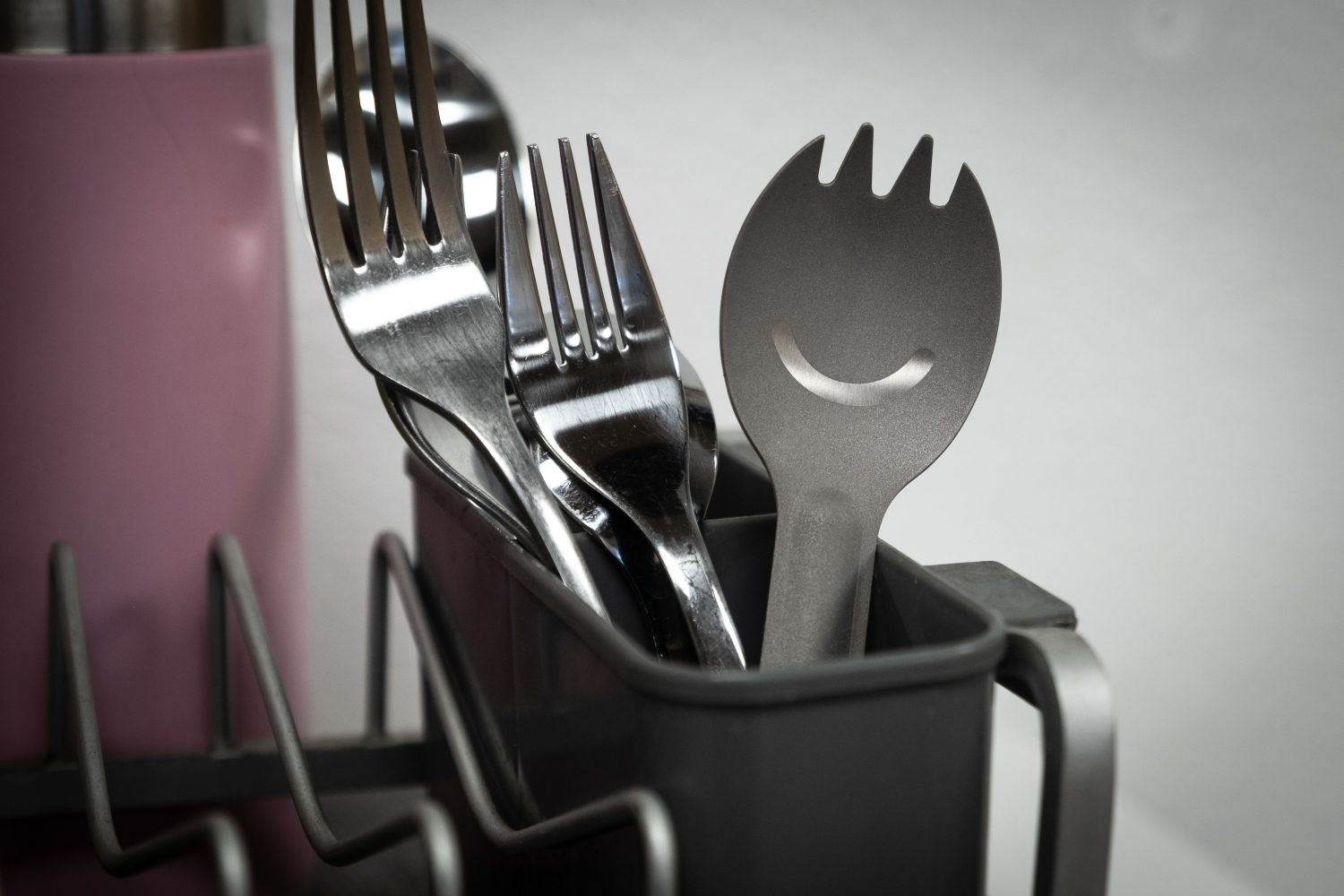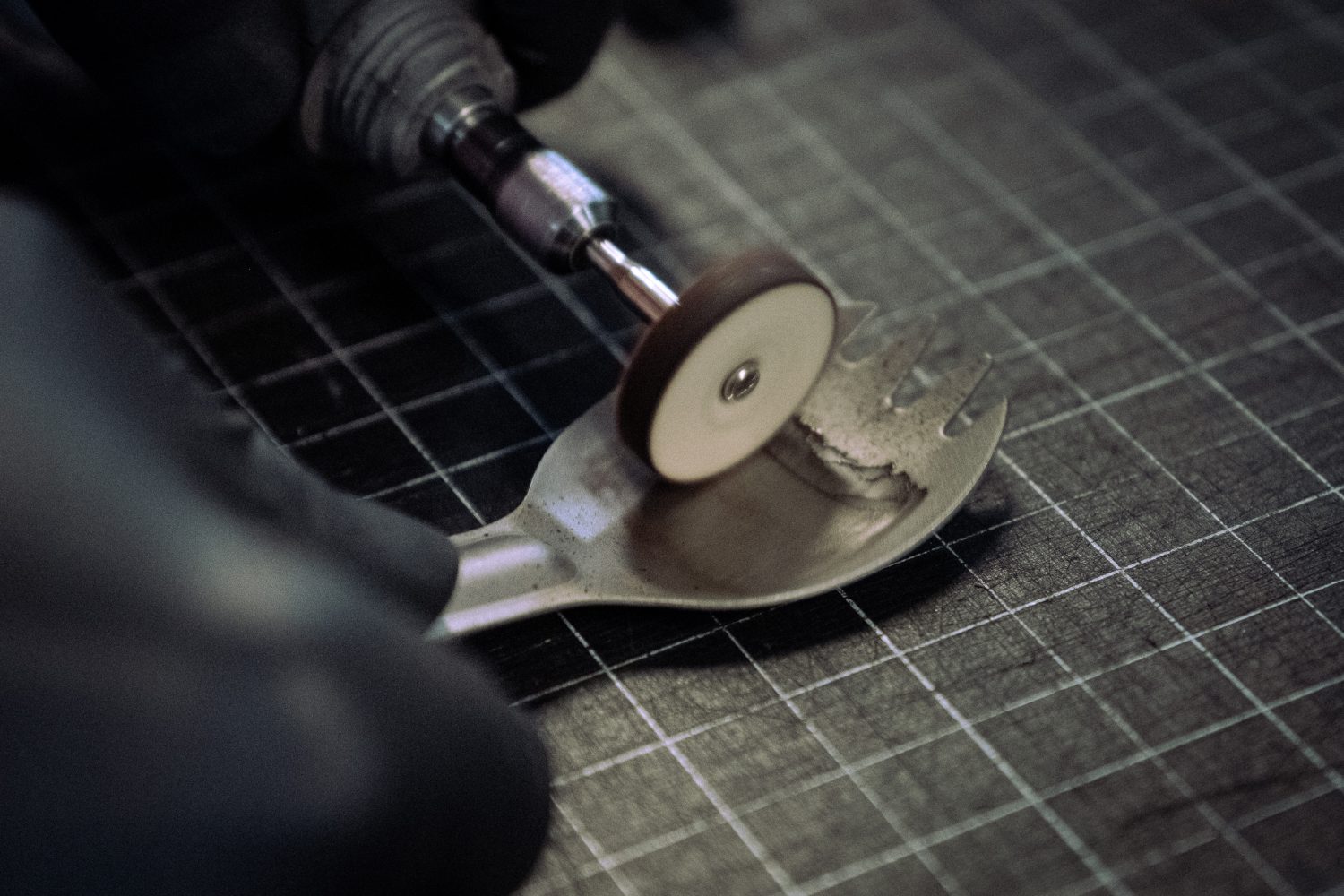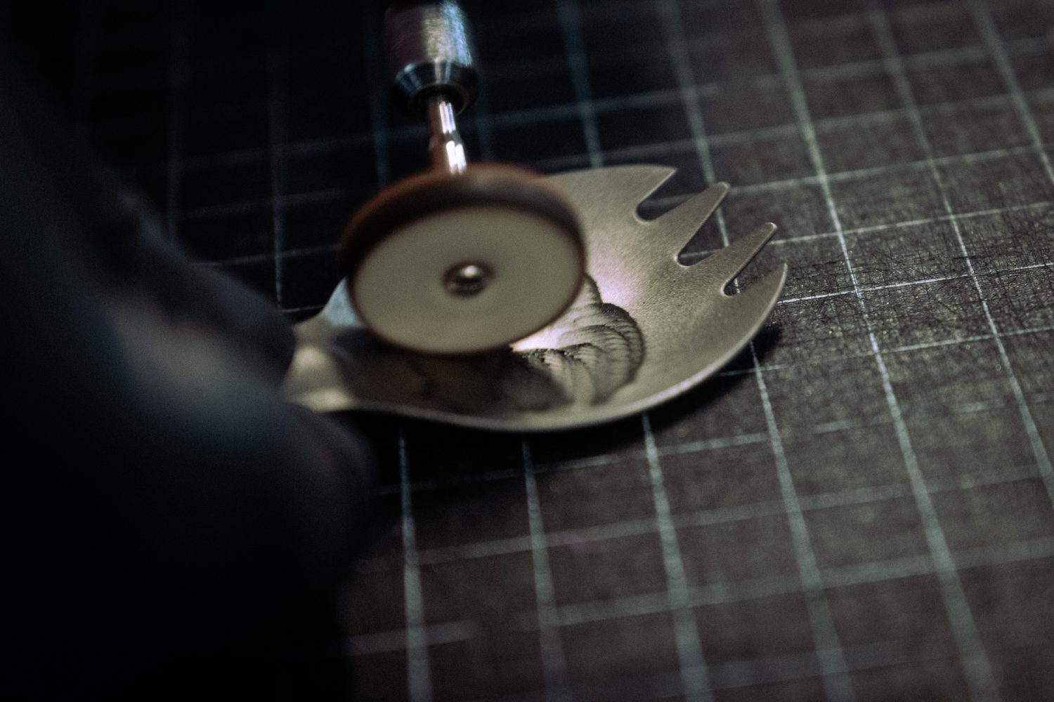 As soon as we created the smiling Spork logo we wanted to also offer a smiling Spork utensil, but we were never able to solve how to make it efficiently. We joked that a laser cut smile would look incredibly cool, but would also make untensil useless for eating soup. We thought about having the smile embossed into the fork, but to do that meant creating special tooling and ordering 5,000 Sporks. As popular as our Spork is, we don’t think the market is quite that large. We considered painting and anodizing the smile as well, but all of that would have made the Spork utensil too expensive to justify.